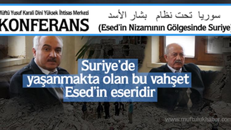 “Esed’in Nizamının Gölgesinde Suriye ( Suriye Tahte Zılali Nizami Beşşar Esed )” başlığıyla konferans veren Yrd. Doç. Dr. Saih JNAIDI ve Yrd. Doç. Dr. İbrahim SULAIMAN,Suriye'de savaş tüm şiddetiyle devam ederken Esad rejiminin sivil halka yönelik saldırıları ve katliamları da devam ediyor.dedi.